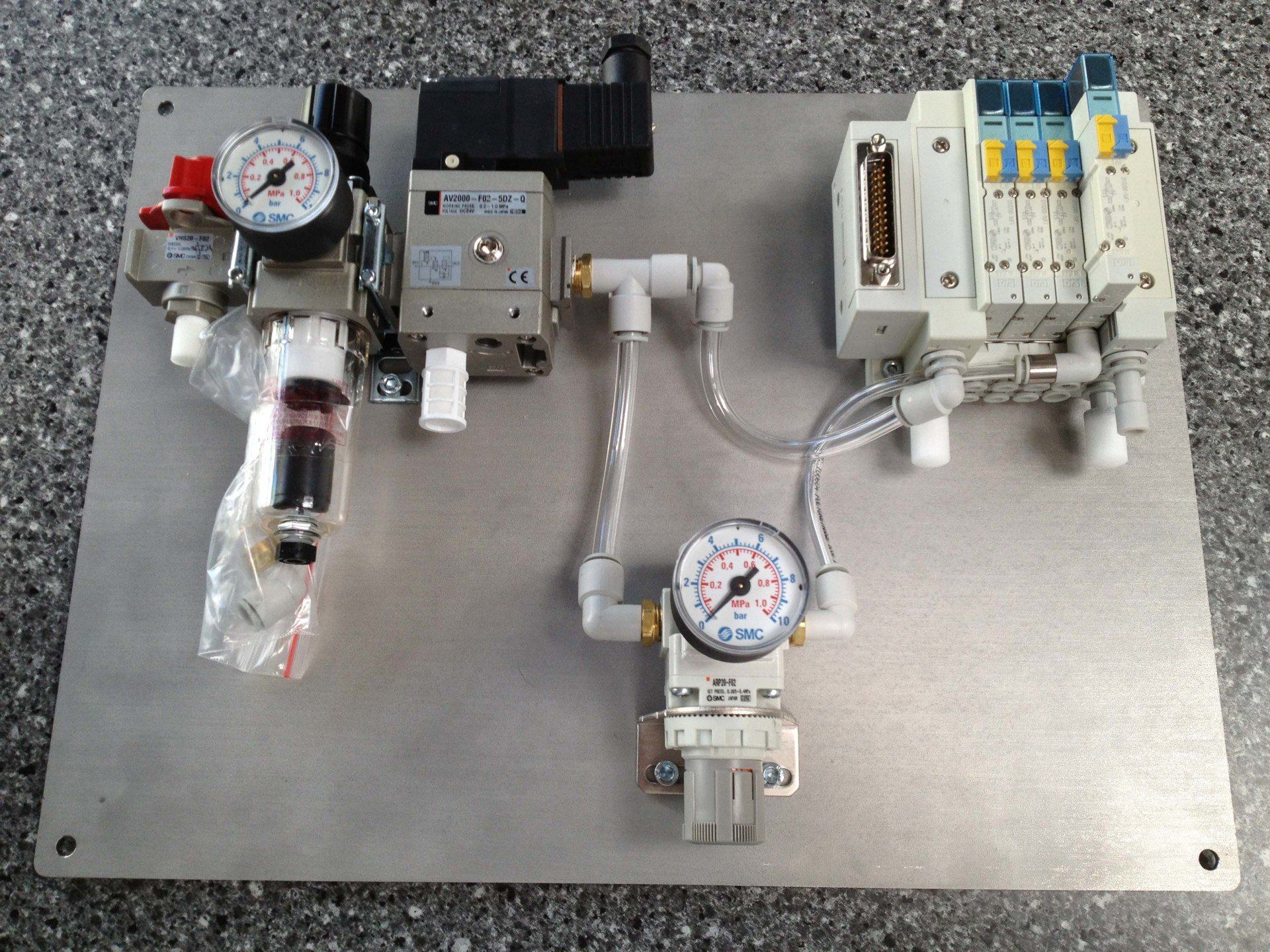 - Sie bekommen die Pneumatikplatte komplett montiert und geprüft von uns angeliefert (Alternativ zu Festo, Aventics, Norgren,….)