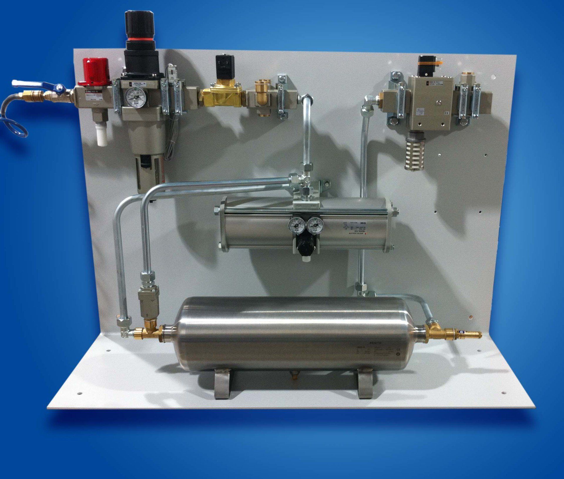 Bei einer Pneumatikplatte handelt es sich um Blech in beliebiger Ausführung kombiniert mit Pneumatikprodukten.